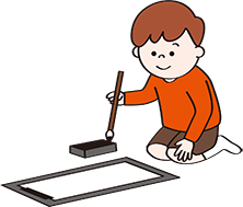 - ゆうぎしつ:書き初め(水書)
